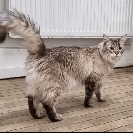 Batou est un chat sociable et proche de l'humain, qui réclame volontiers des caresses.