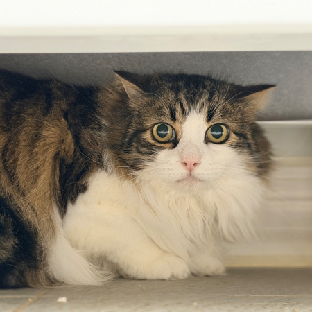 Booster est un chat discret, il s'entend avec les chats et les enfants respectueux. Nous aimerions le placer dans une famille calme afin qu'il soit détendu