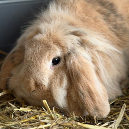 Bunny vient de la fourrière du nord de la France. Nous ne connaissons ni son passé ni son âge. Il est calme, gentil et manipulable.