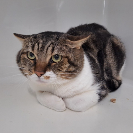 C'est un chat qui se montre sociable avec les humains, il est actuellement porteur de la teigne