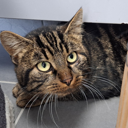 Dorito est un chat assez surprenant, il peut se montrer d'une extrême gentillesse, très câlin et collant, puis si la séance câlin est trop courte ou trop longue à son goût, il ne manquera pas de vous le faire comprendre ! Vous l'avez donc compris, Dorito a un caractère bien trempé. Nous vous invitons à venir le rencontrer car il saura vous faire craquer avec ses jolis yeux verts ! À noter que Dorito est sujet aux calculs rénaux, il est donc sous croquettes Urinary.