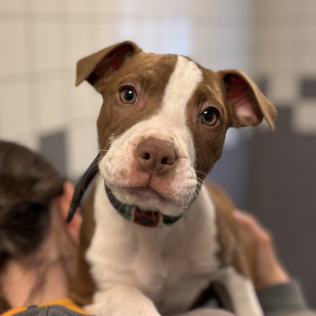 Céleste est une jeune chienne qui vient tout juste d'arriver et qui nous vient d'une fourrière. C'est une petite chienne joyeuse et sociable.