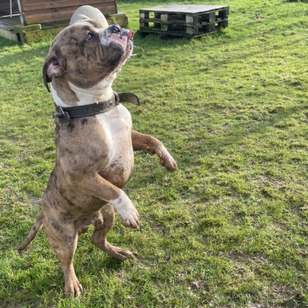 Nos chiots cohabitent avec d’autres chiens, mais ne côtoient pas d’enfants ou de chats au refuge; au vu de