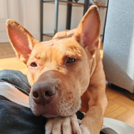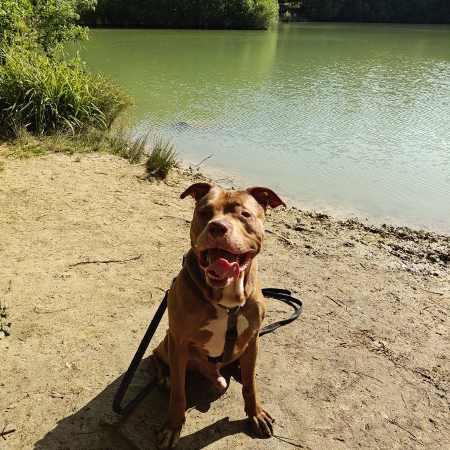 Son caractère : Kindy, x staff née le 28/8/2017 (déclassée par diagnose de race), est actuellement en FA dans le 92.