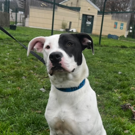tous les canidés; chaque animal a ses têtes et ses affinités. Ne côtoie pas d’enfants au refuge, mais pourra s’habituer à la