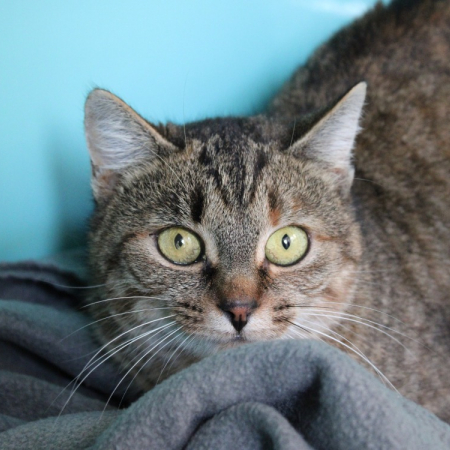 LOOTESSE est arrivée au refuge avec ses compagnons d'infortune, car leur famille s'est laissée déborder par les prises en charge de chats, une soixantaine au bas mot...