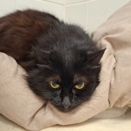 Elle est affectueuse, s’entend bien avec les autres chats et pourra vivre dans une famille avec des enfants en bas âge.
