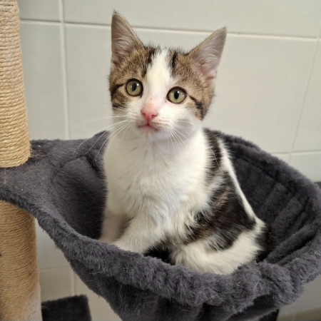 Après être sortis de la rue où ils ont grandi à côté des humains, Mia et Moka se révèlent très gentils. Mia est maintenant à l’aise avec sa FA, curieuse et adore les câlins. Moka encore timide mais il commence à se laisser caresser.