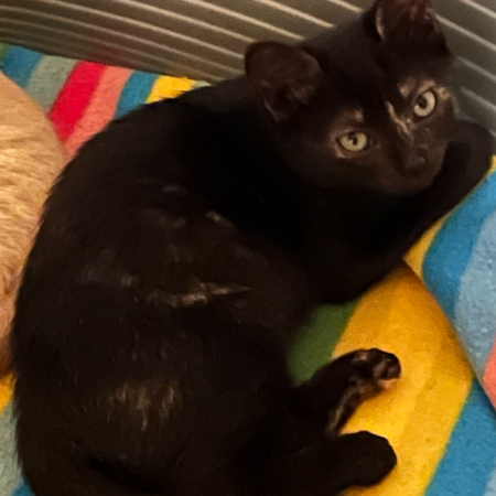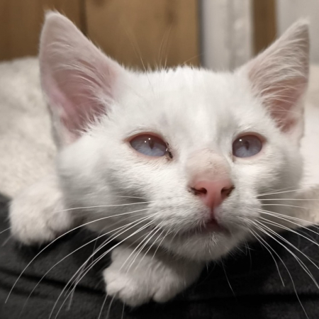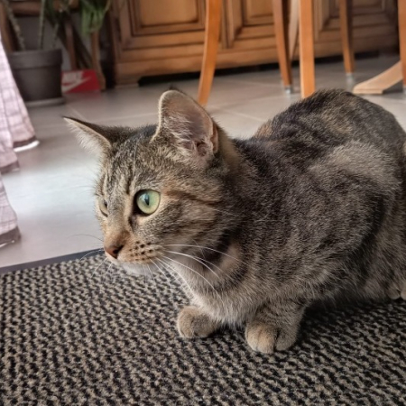 Mielle est arrivée de fourrière. Elle est un peu timide au départ mais, dès que l'on vient la voir, elle apprécie nos caresses.