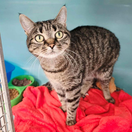 Mimi est arrivée par le biais de la fourrière en Aout 2025. C'est une minette sensible qui aura besoin d'un environnement calme. Une fois en confiance, elle saura se dévoiler et apprécier les caresses. Mimi est éligible au dispositif SOS adoption car elle souffre de multiples pathologies (gingovistomatite, insuffisance rénale, trouble gastrique ...) mais mérite tout autant que ses copains de chatterie, de trouver sa famille pour finir ses jours heureux. Que vous viviez en maison ou en appartement elle saura s'adapter. Pour ce qui concerne ses ententes, elle n'ont pas encore été réalisées.