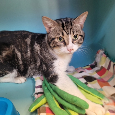 Nimbus est un chaton timide à qui il faudra du temps pour qu'il se sente à l'aise et qu'il accorde sa confiance. Il adore la compagnie des autres chats, un congénère sociable et bien dans ses pattes serait idéal.
