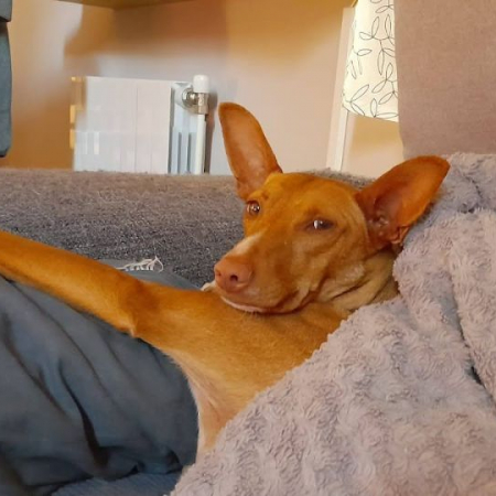 Promisse a tout juste 2 ans et pèse 12kg. C'est une magnifique Podenca d'un beau roux comme les renards