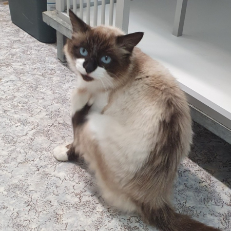 Ce papi très sociable, calme et affectueux est à la recherche d'un panier retraite pour couler ses vieux jours. Westeros est porteur du FIV (sida du chat), il ne devra donc pas avoir d'accès à l'extérieur et ne pourra pas vivre au contact d'autres chats qui ne sont pas porteurs de cette pathologie. Westeros pourra vivre au contact de grands enfants calmes et respectueux de l'animal. En effet, monsieur n'aime pas la manipulation forcée. De plus, il souffre peut-être d'un problème cardiaque. Des examens sont actuellement en cours au refuge.